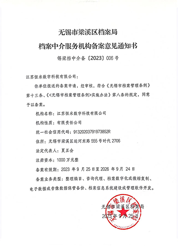 恒米-中介备案凭证