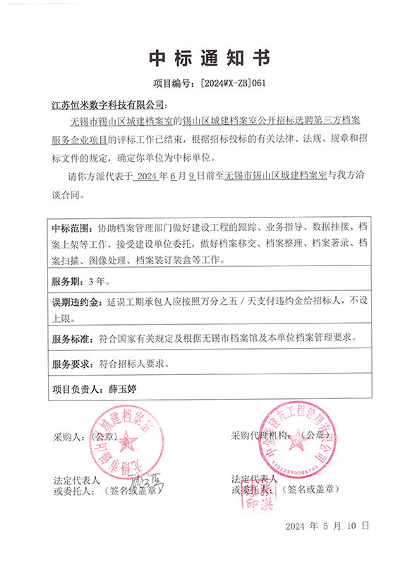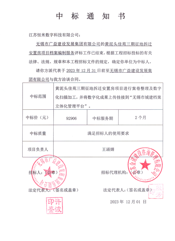 中标通知书