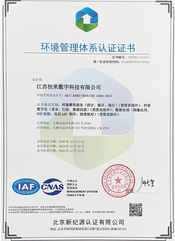 环境管理体系认证证书