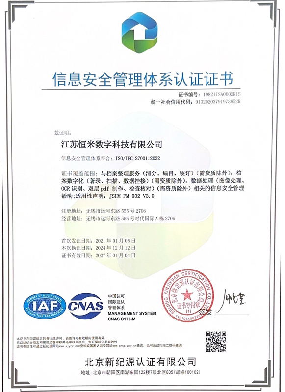信息安全管理体系认证证书