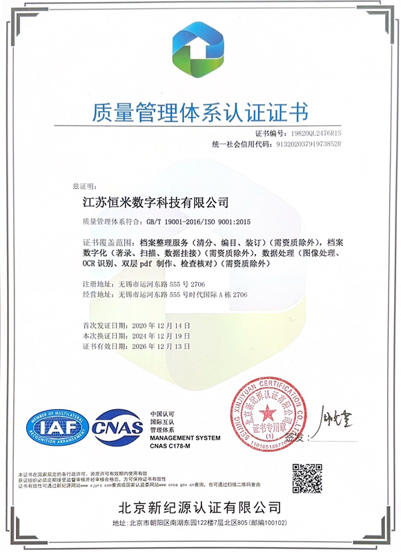 质量管理体系认证证书