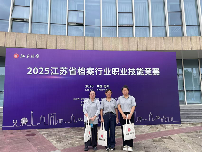 9月23日至25日,由省档案局、省档案馆、省委省级机关工委、省人社厅、省总工会、团省委、省档案学会、苏州城市学院联合举办的“2025年江苏省档案行业职业技能竞赛”在苏州城市学院圆满落幕。来自全省档案行业的数十支精英代表队同台竞技,展现了新时代档案工作者的精湛技艺和职业风采。我公司派出的由董彩红、张楠、胡雨琼组成的代表队,在比赛中沉着应战、发挥稳定,虽未进入最终获奖名次,但充分展示了我公司档案工作人员扎实的业务基础和良好的精神风貌,实现了“以赛促学、以赛促练”的参赛目标。