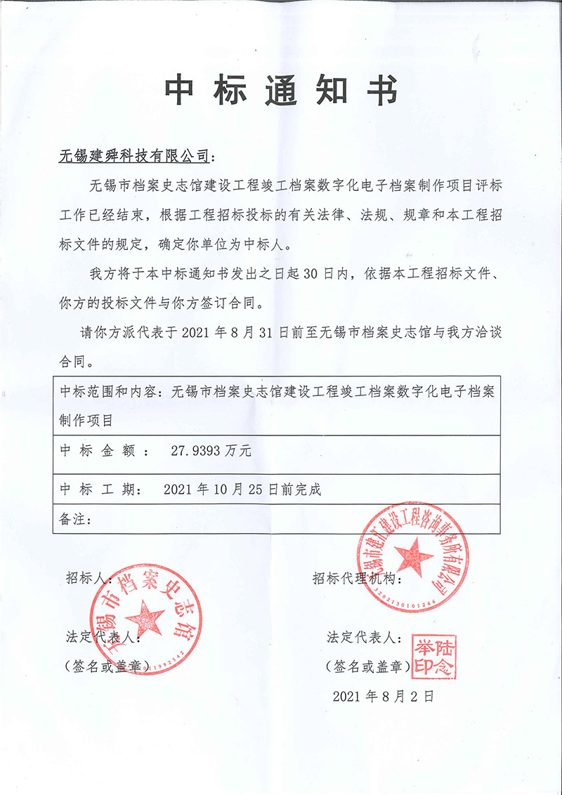 中标通知书
